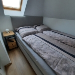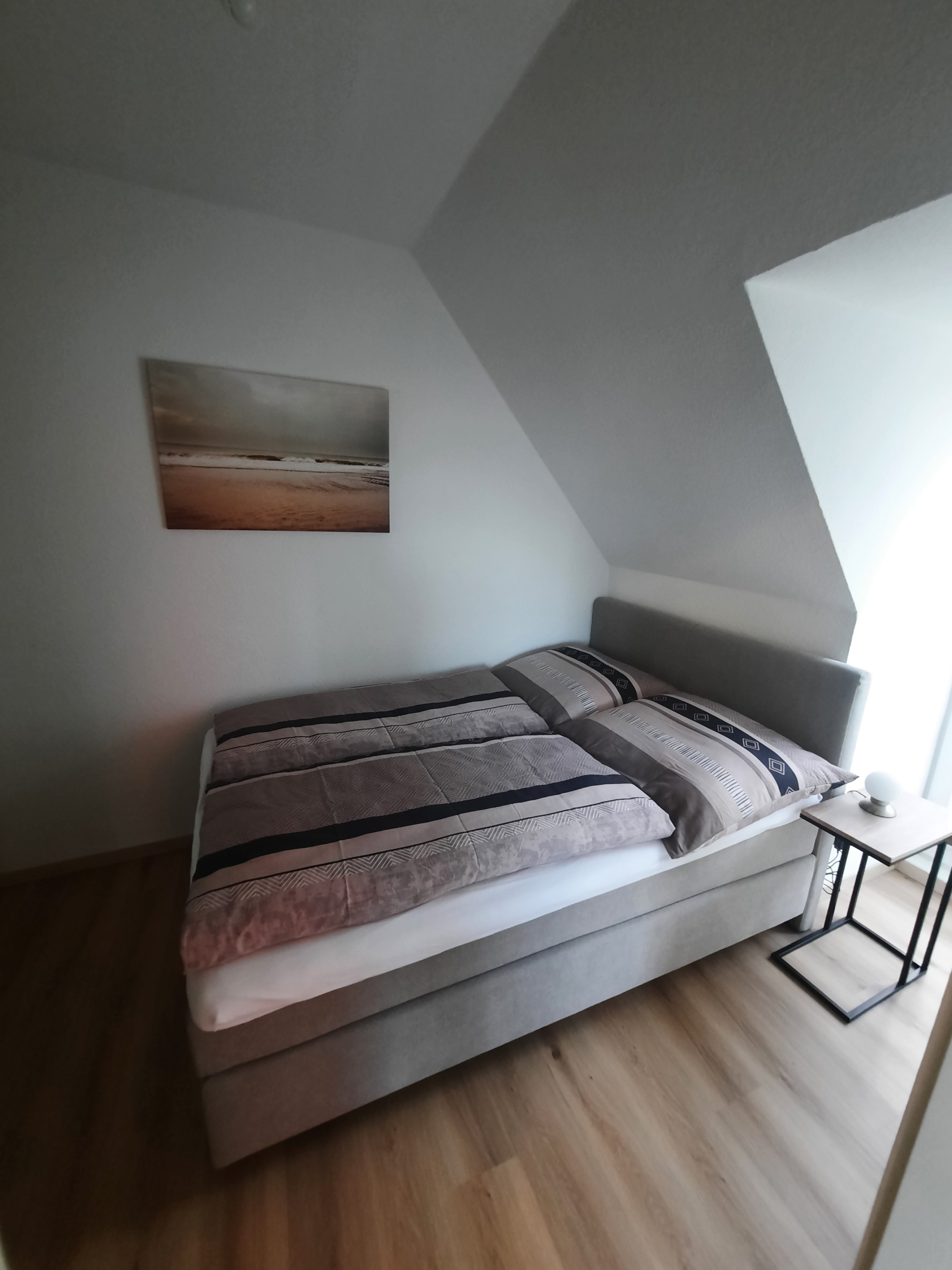 Es sind 2 separate Schlafzimmer mit jeweils einem bequemen Boxspringbett vorhanden.