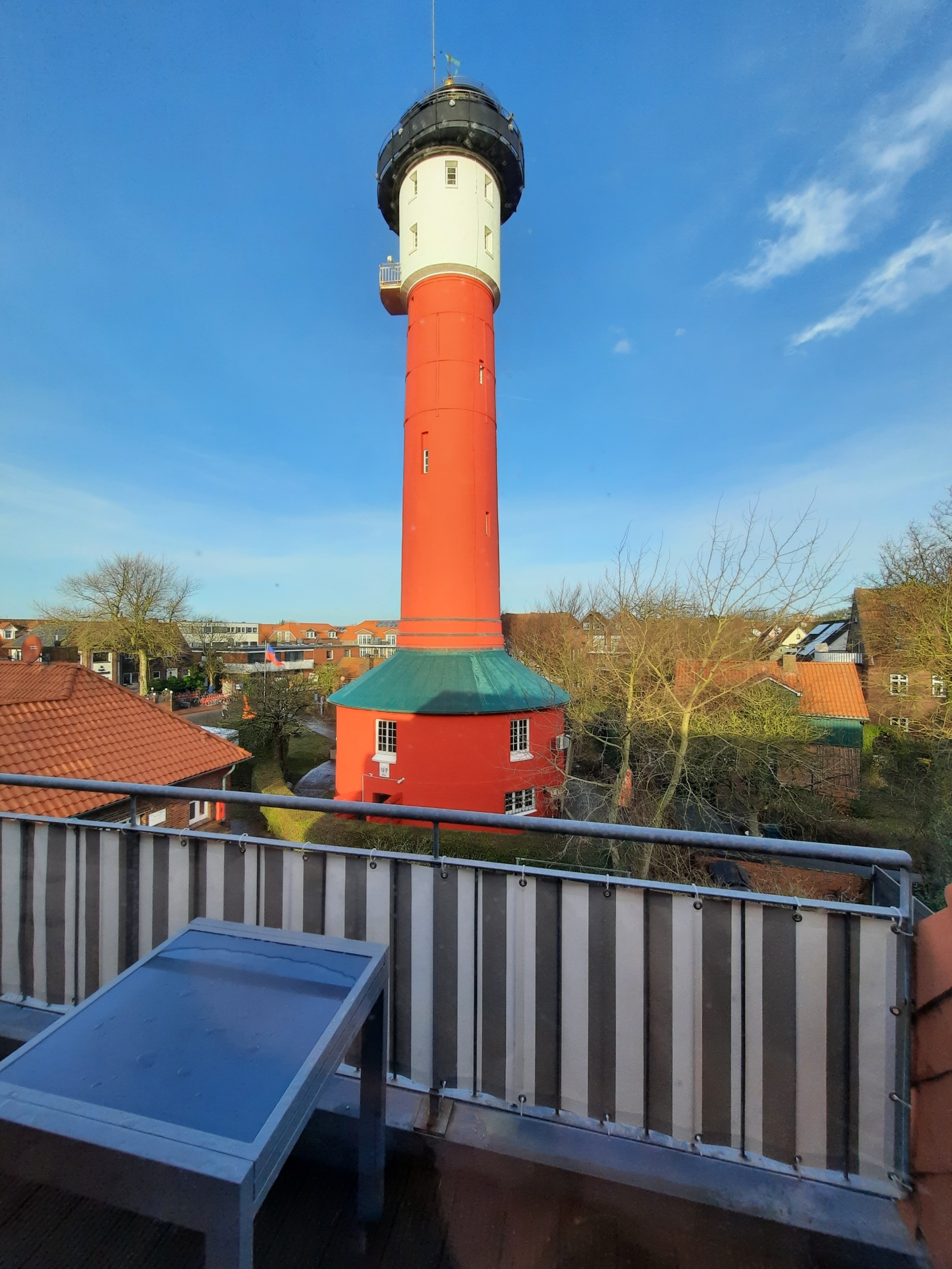 Der Balkon liegt in Richtung Norden und man hat einen herrlichen Blick auf den alten Leuchtturm.