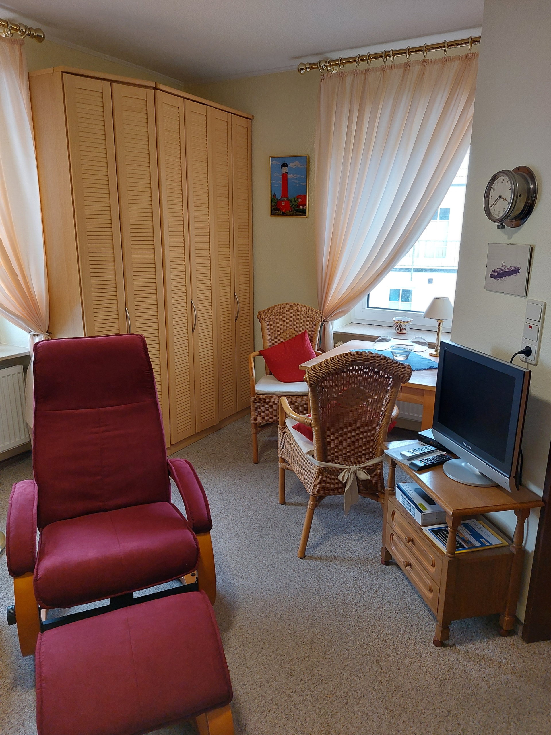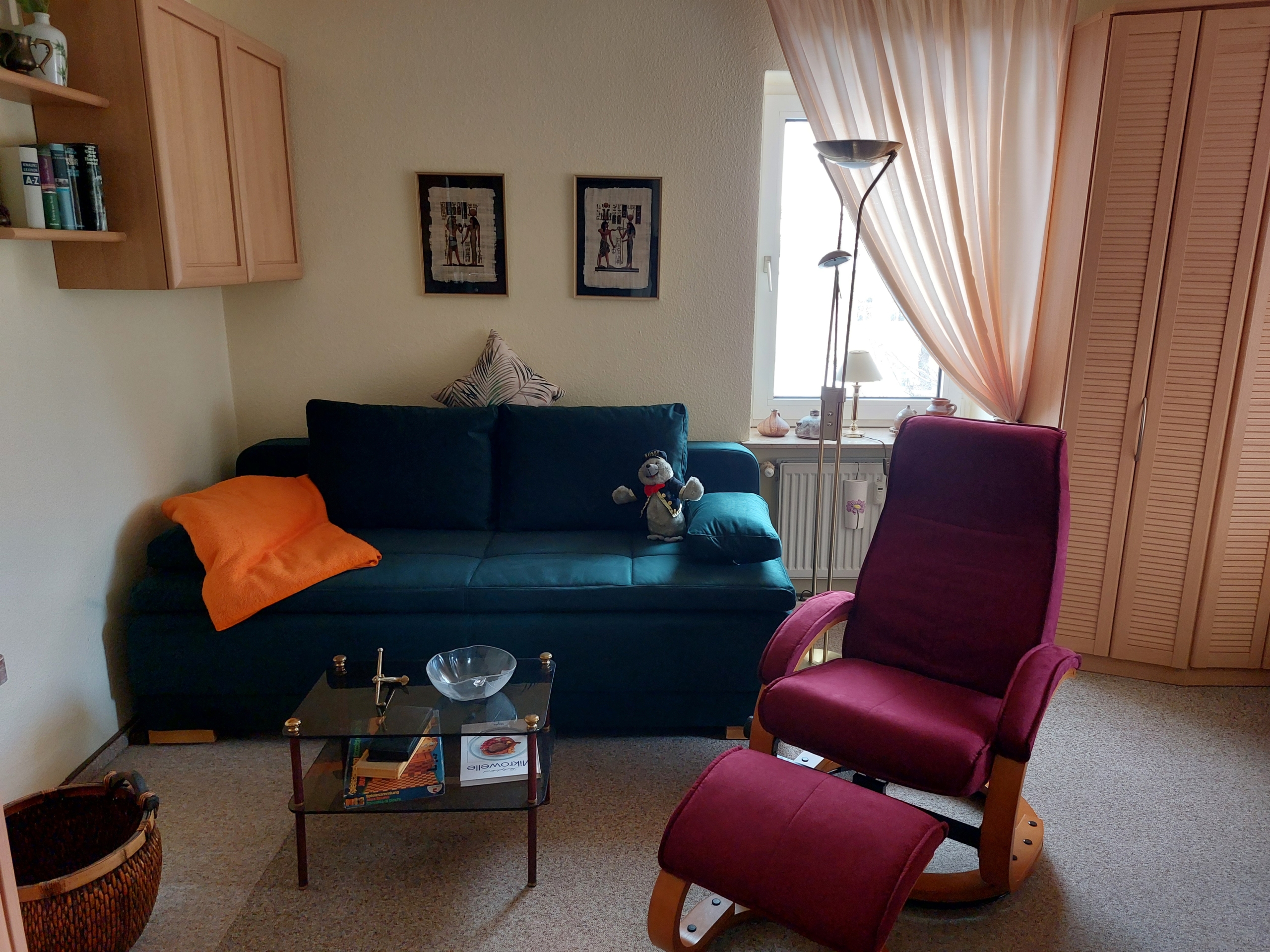 Zum schlafen steht Ihnen ein Federkern-Schlafsofa zur Verfügung. Ein Relax Sessel zum entspannen bei einem guten Buch.