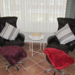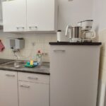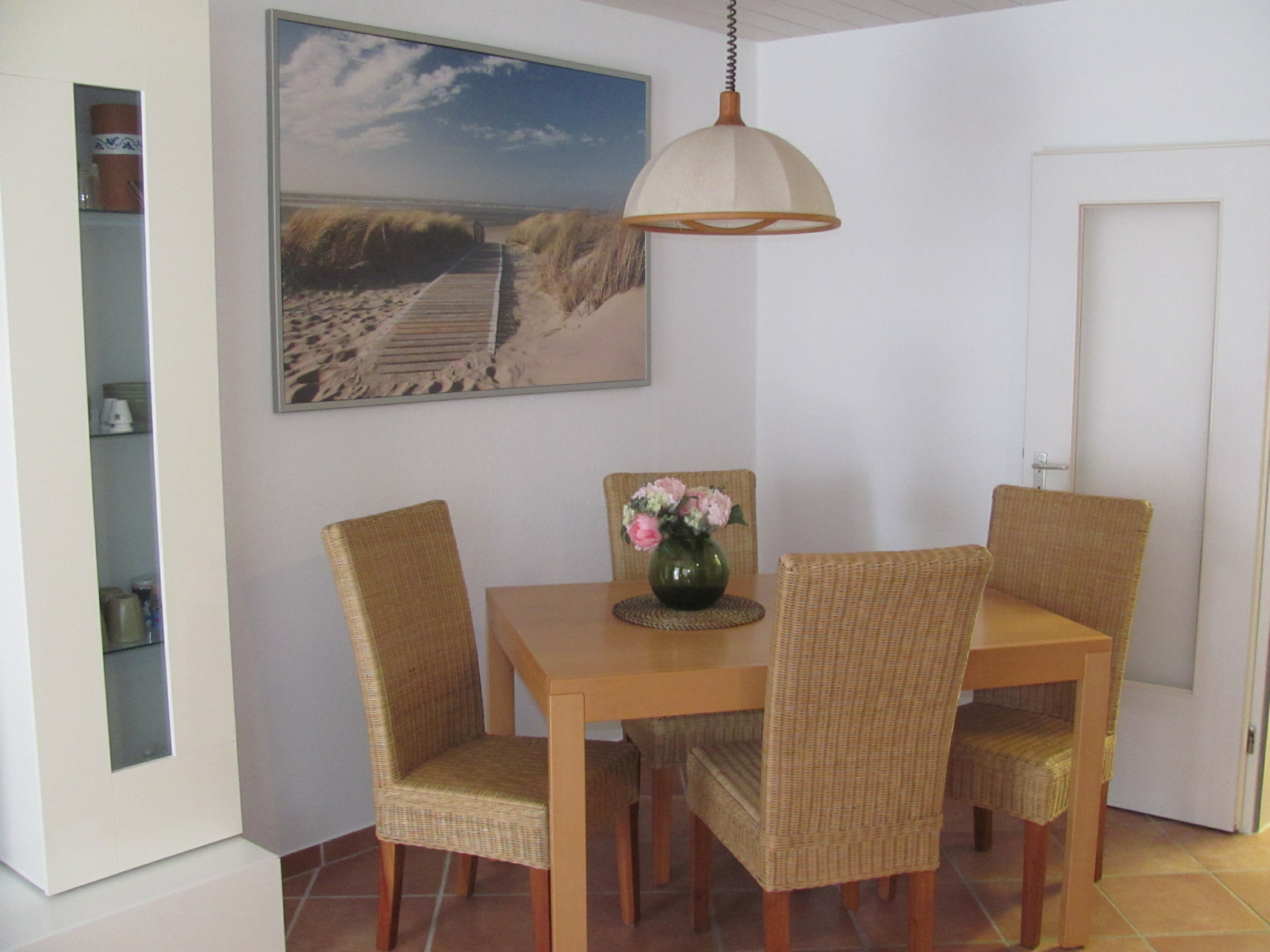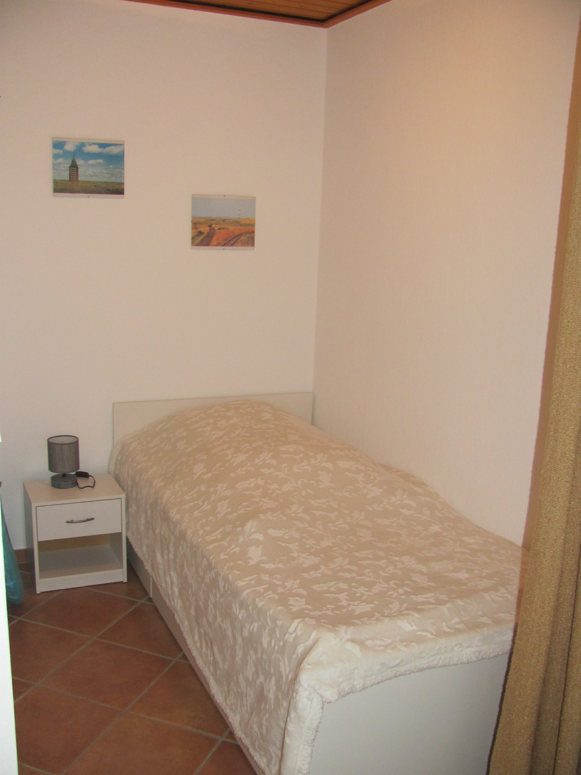Eine abgeschlossene, für 1 – 2 Personen ausgelegte, ca. 30 qm große helle und freundliche Nichtraucher-Wohnung im Erdgeschoss mit eigenem Eingang über die Westterrasse (Innenhof) vor.