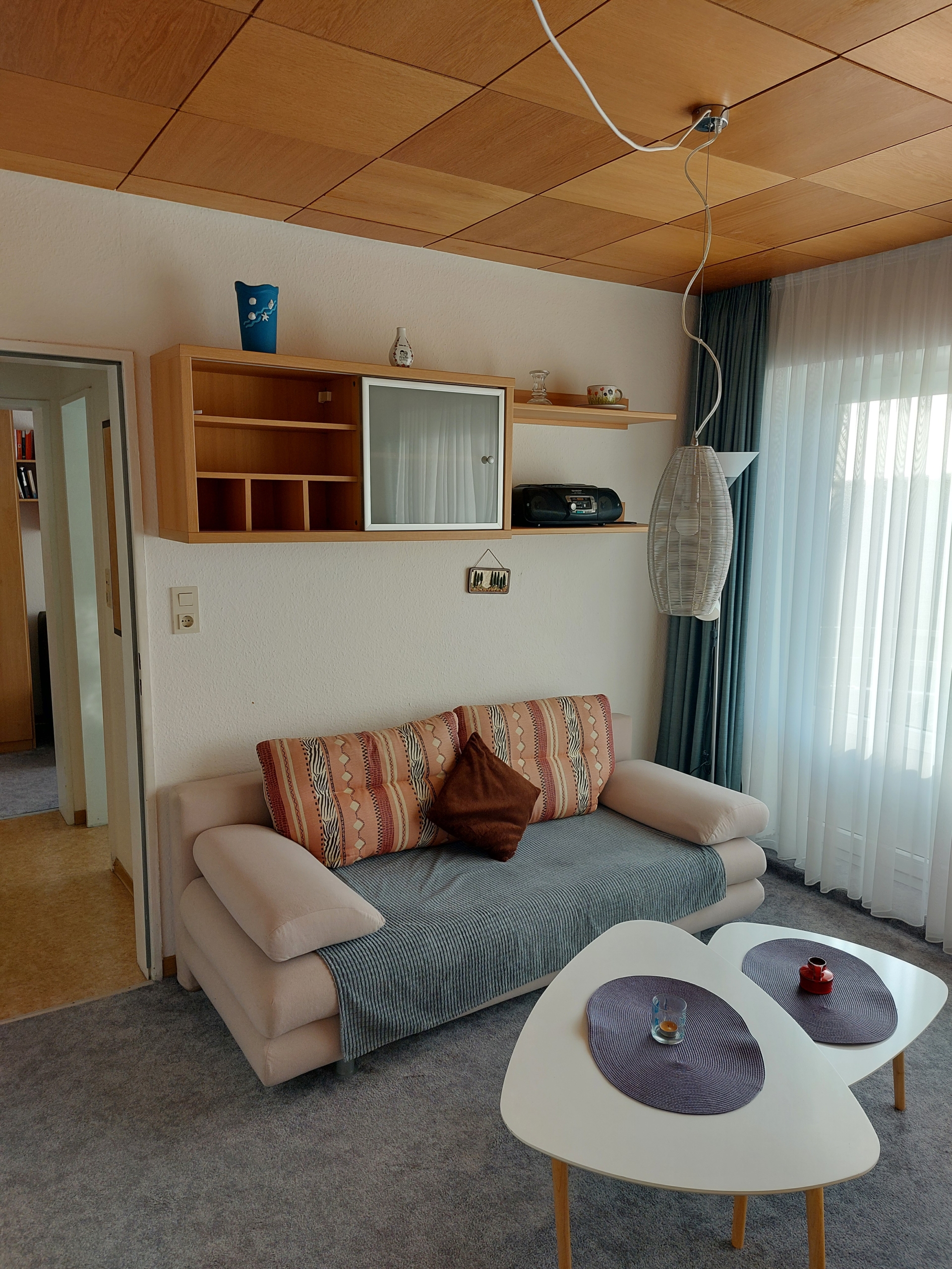 Die Wohnung verfügt über einen Wohnraum mit Sofaecke und Kabel-Flachbildschirm-TV sowie Radio. Ferner befinden sich hier Ehe-Schrankbetten. Der Schlafraum verfügt über ein Bett 120×200.