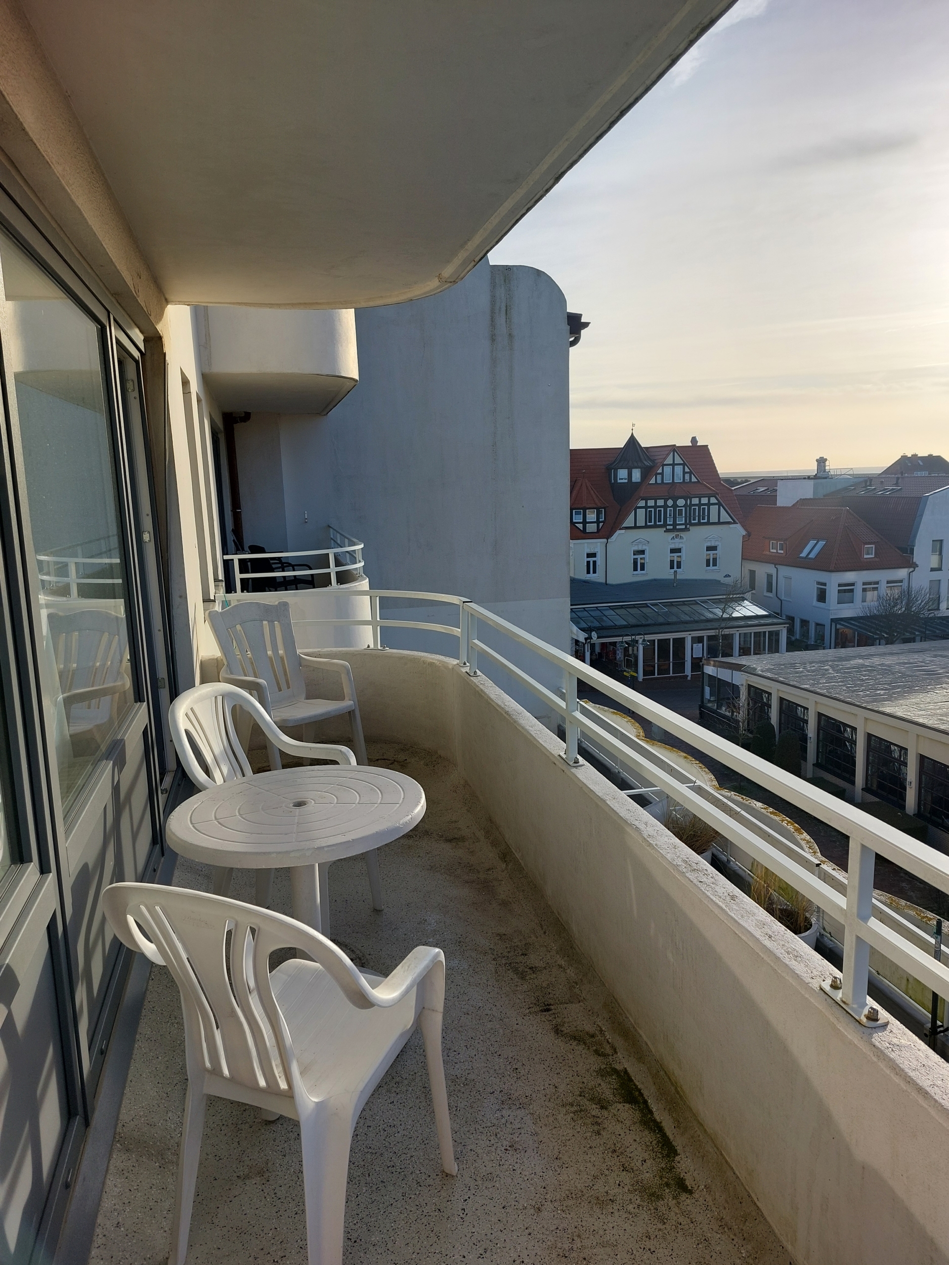 Die Wohnung hat einen großzügigen Süd-West-Balkon welcher mit einen Blick auf das Wattenmeer, den Hafen von Wangerooge und auch aufs Meer gewährt.