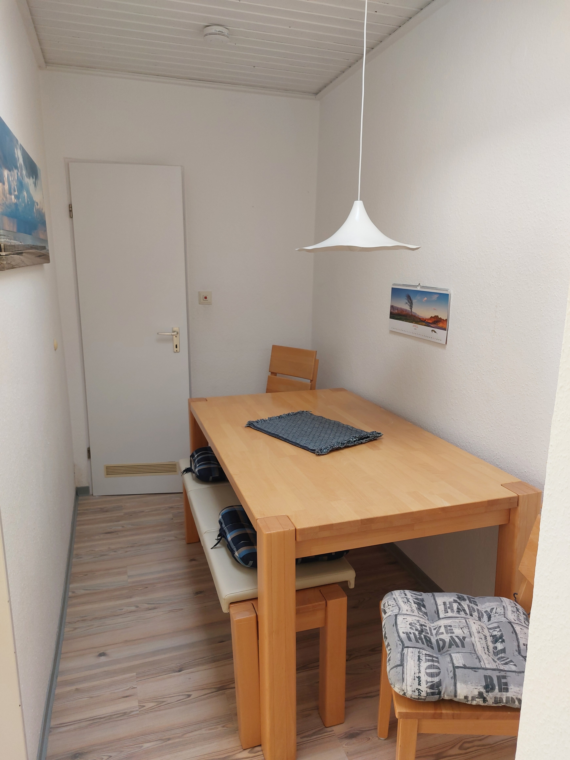 Die Küche ist ausgestattet mit 4 Platten-Ceranherd, Backofen, Waschmaschine, Geschirrspülmaschine, Kühlschrank sowie Essecke.