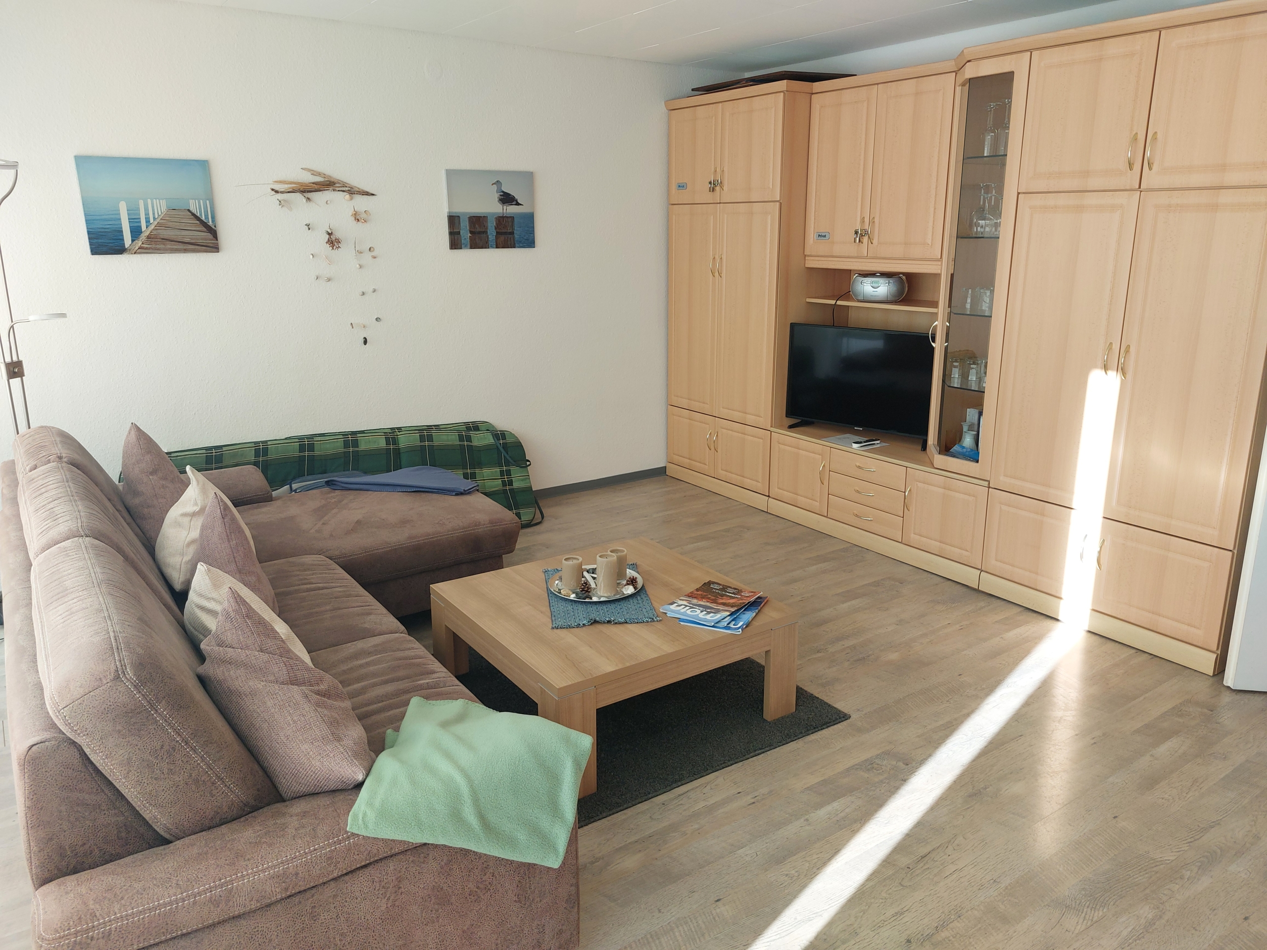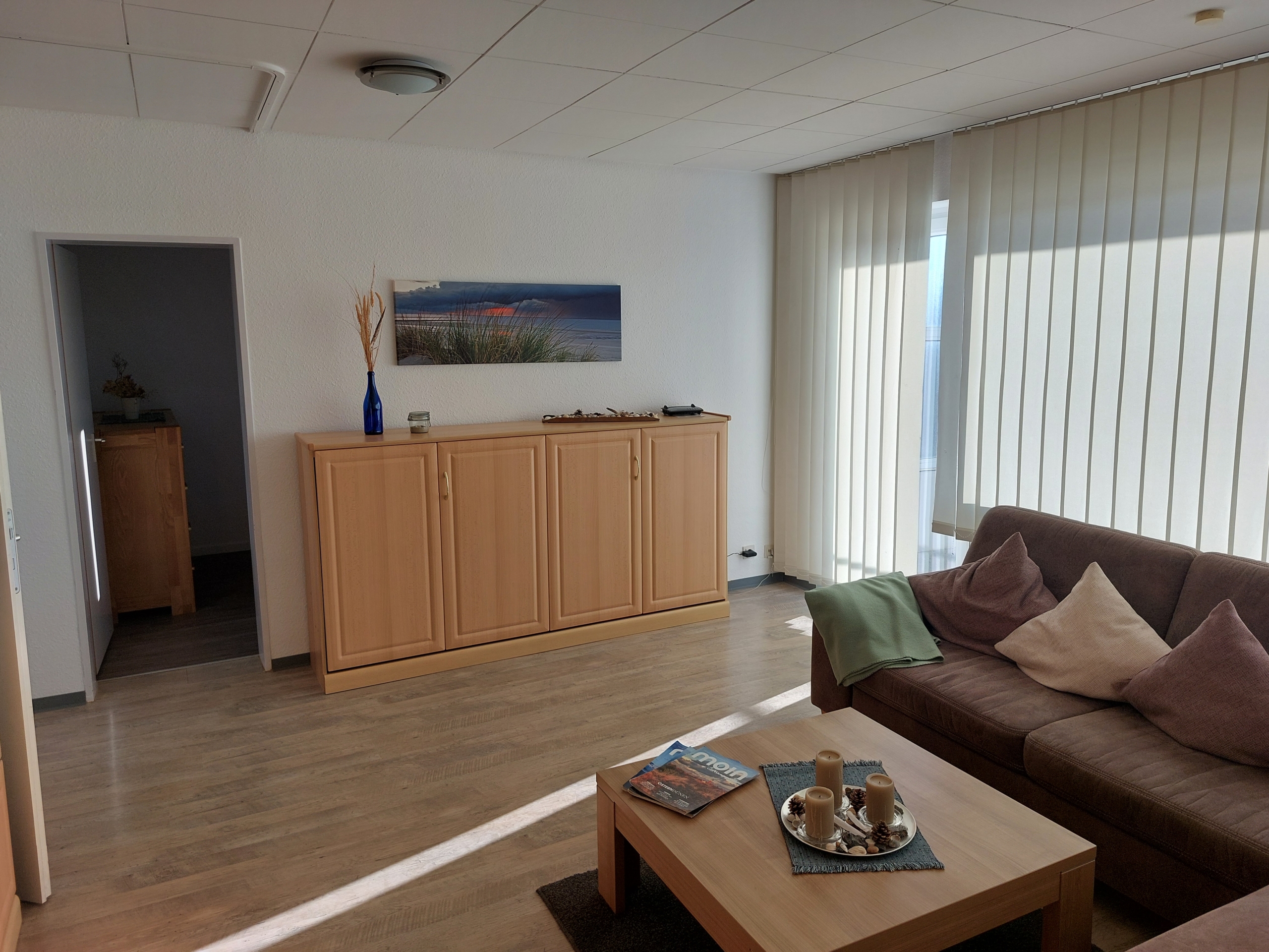 Die Wohnung verfügt über einen Wohnraum mit großzügiger Sofaecke. Ferner sind hier zwei einzelne Schrankbetten vorhanden. Der Schlafraum verfügt über ein Ehebett.