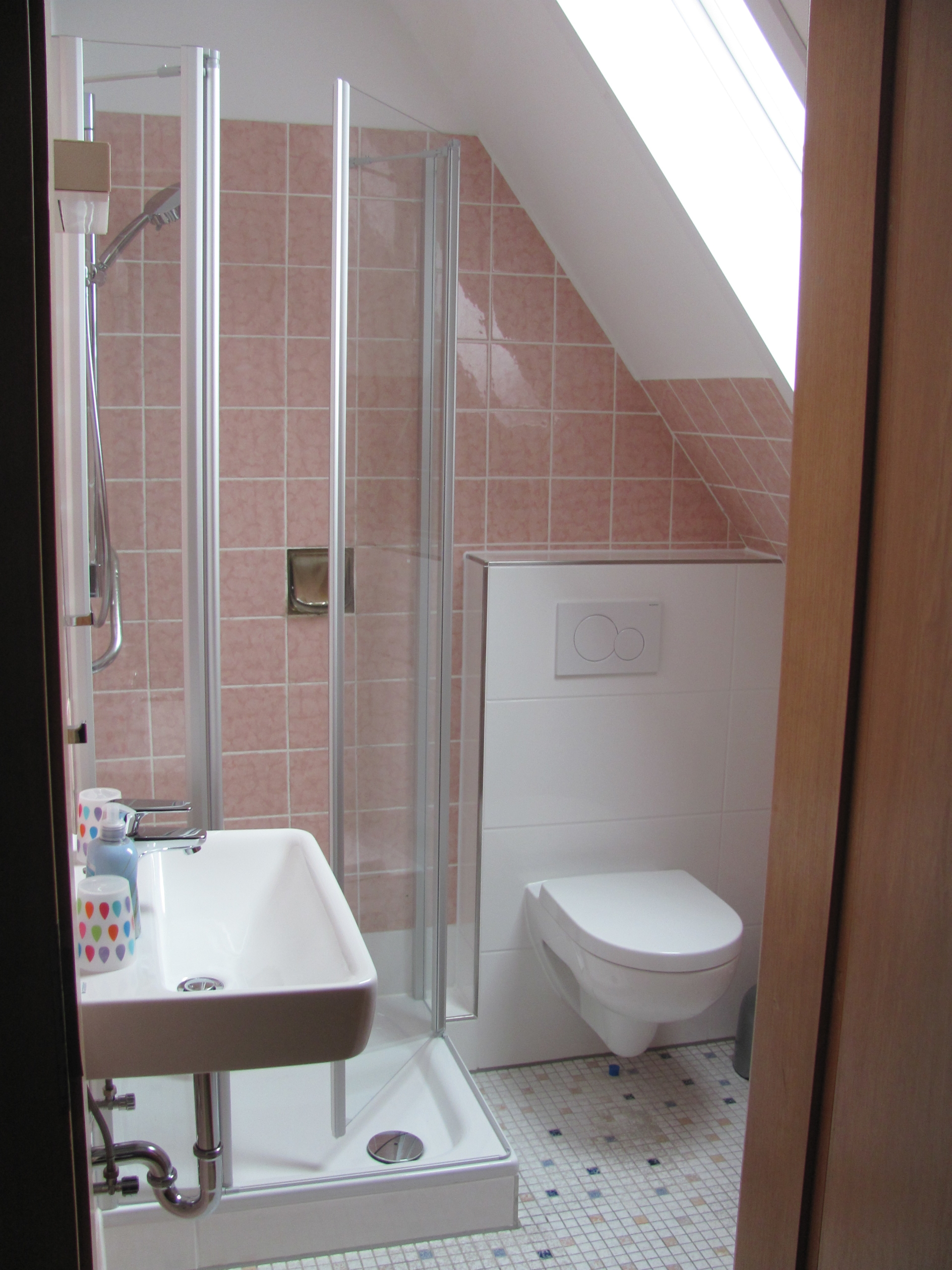 Vom Wohn-Essbereich geht Dusche/WC ab.