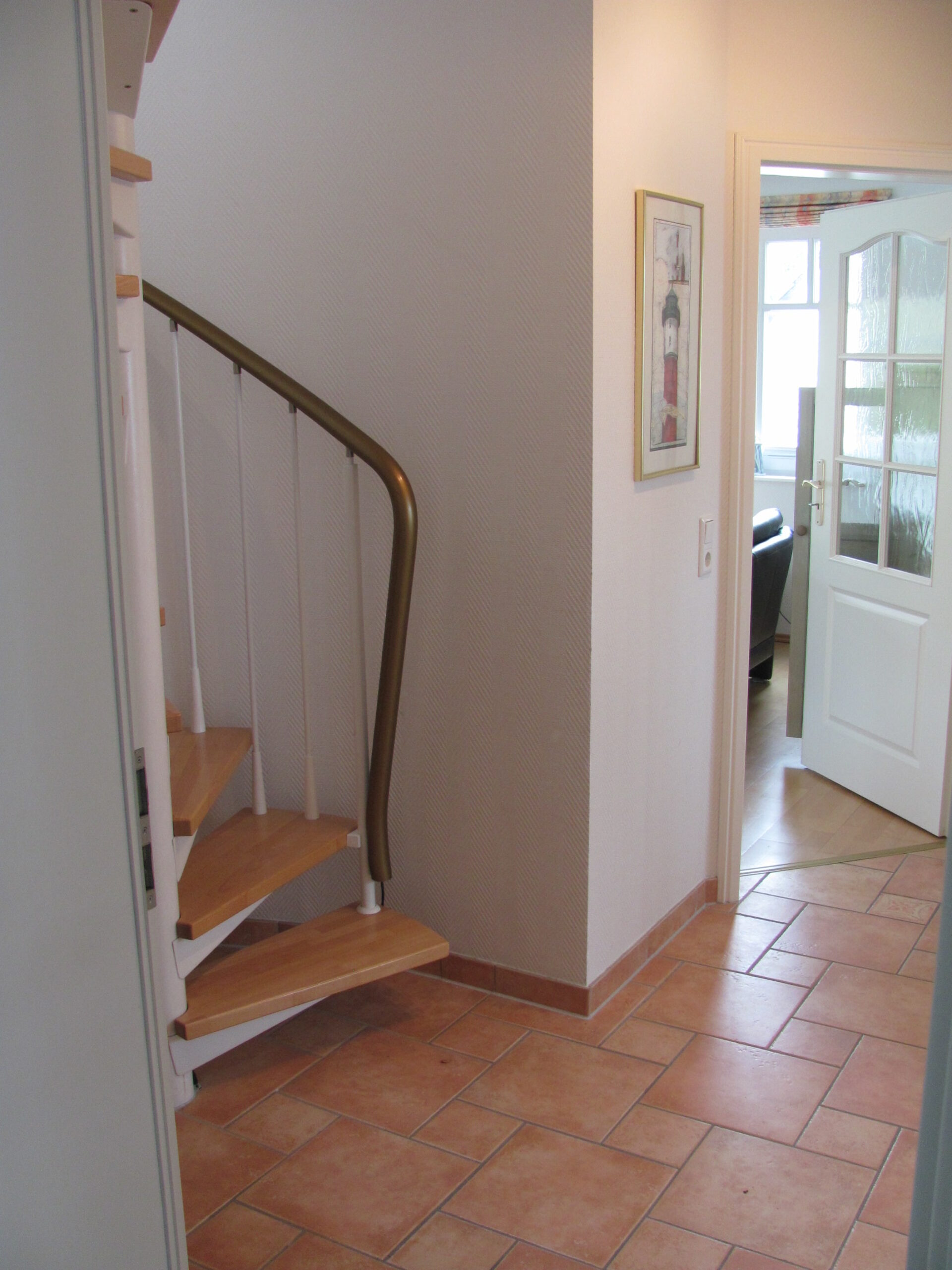 - Flur mit Treppe zum Dachgeschoss und Blick auf Wohnbereich 35-26-06